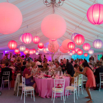 Suspend a variety of coloured paper lanterns down the length of a white lined marquee making sure you use pink, fuchsia, violet and rich purple lanterns and everything in between. When illuminated our warm toned paper lanterns will exude warmth, romance and happiness. Illuminate our pink paper lanterns with mains powered festoons or use our LED lights (Buttonlites) to allow for a more random placing our your coloured lanterns.