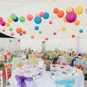 We have chosen some different hanging paper lantern canopies and put together a complete package to recreate the look, all you need to do is hang your coloured lanterns ready for your big day.